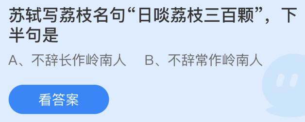 苏轼写荔枝名句日啖荔枝三百颗下半句是?蚂蚁庄园7月24日答案来啦!