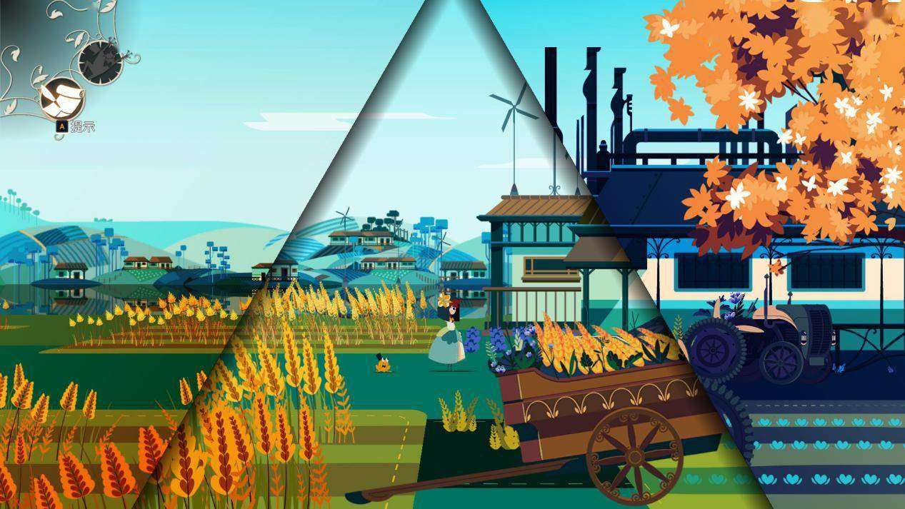 在部分非战斗区域中,玩家的画面被分割为三个部分,左边代表了过去,中间代表着现在,而右边则代表了未来。玩家可以从过去,获得一些丢失的道具与信息,而通过窥视未来,则可以看到最具可能性的未来。必须承认,在同一个画面中看到农业和工业时代的景色,是一种非常奇妙的体验。在游戏初期,如何改变未来,也成为了玩家最大的动力之一。