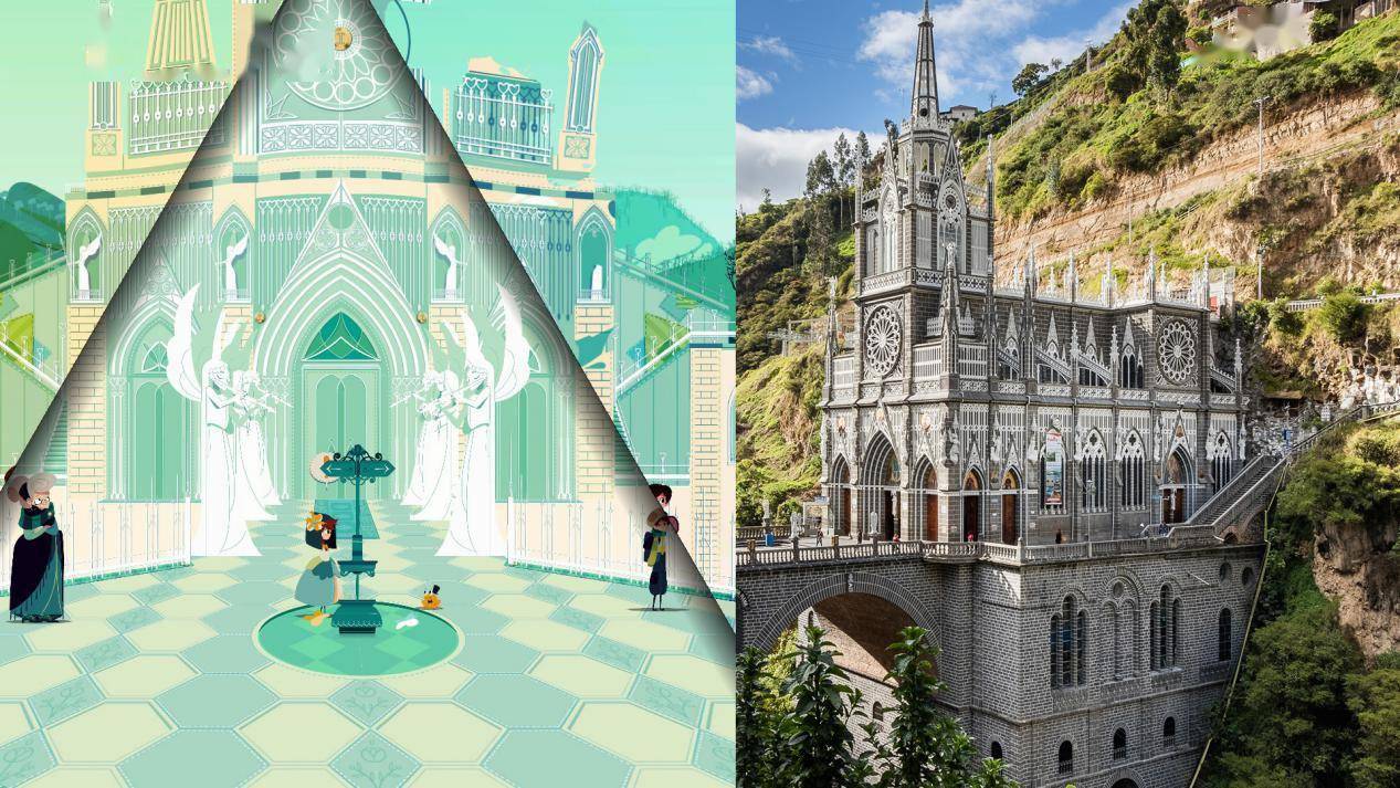 哥伦比亚,这个拉丁美洲第三大国,拥有丰富自然资源,以及独特文化历史,这些自然而然也就成为了游戏中,任务服饰、自然景观,以及人造建筑的灵感设计来源。在游戏一开场,玩家扮演的克莉丝贝尔就会进入一间哥特风格的教堂,其建筑原型就是拉斯拉哈斯教堂,而之后章节中出现的“彩虹色河流”“盐矿教堂”等,也都是哥伦比亚的知名奇观。