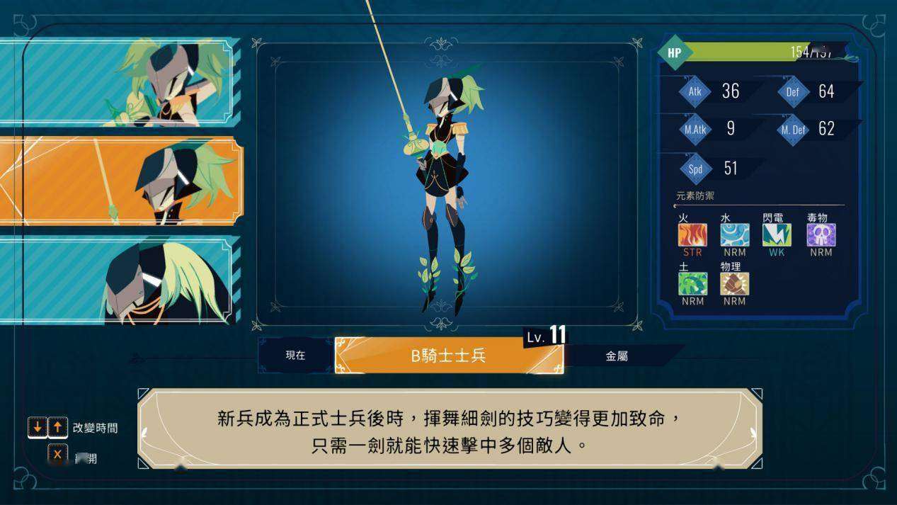 战斗开始后,玩家处于画面中间,敌人分别从左右两侧出现,玩家需要指定相应的方向,进行攻击、技能等战斗指令的输入。更重要的是,这左右两侧的格局,正好也对应了上面小节,我所提到的“时间控制”,玩家可以将左边的敌人送回过去,右侧的敌人送往未来,用以改变他们的状态。比如,将一个老年的人类敌人送到过去,将他变成中年状态。