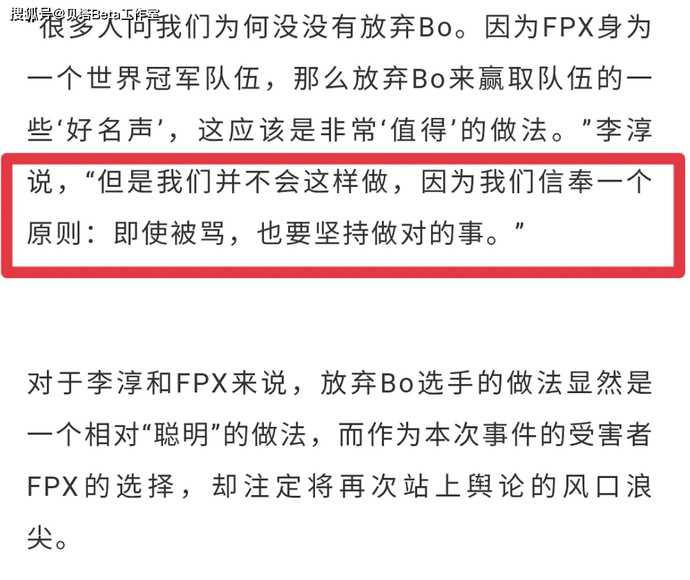 最后就是李淳再次强调:FPX不会放弃Bo,就算是现在被骂,也要坚持做自己认为对的事情。