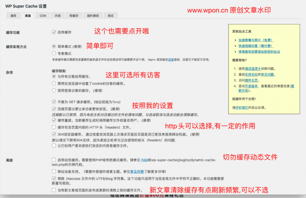WP-SUPER-CACHE 这款插件是使用次数最多,应用到各个子站点,效果设置接近完美,缓存效果不输给那些付费的。
