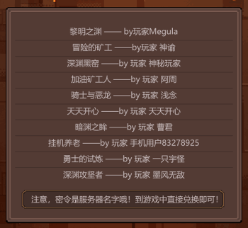 此前的服务器冠名活动,不少冒险家没参加到是否有些可惜?没关系!我们用另一种方式全民参与!所有被选上的服务器名字均设置成福利密令啦,你可以全都要!